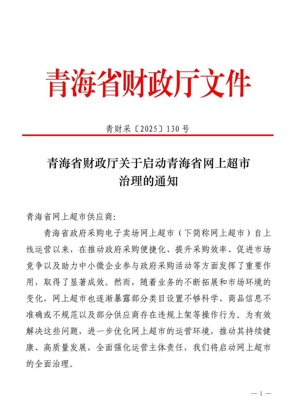 | 青海省財政廳關(guān)于啟動青海省網(wǎng)上超市治理的通知 |