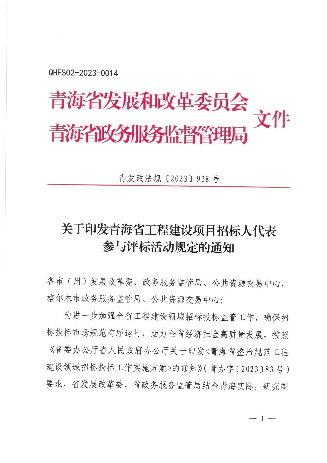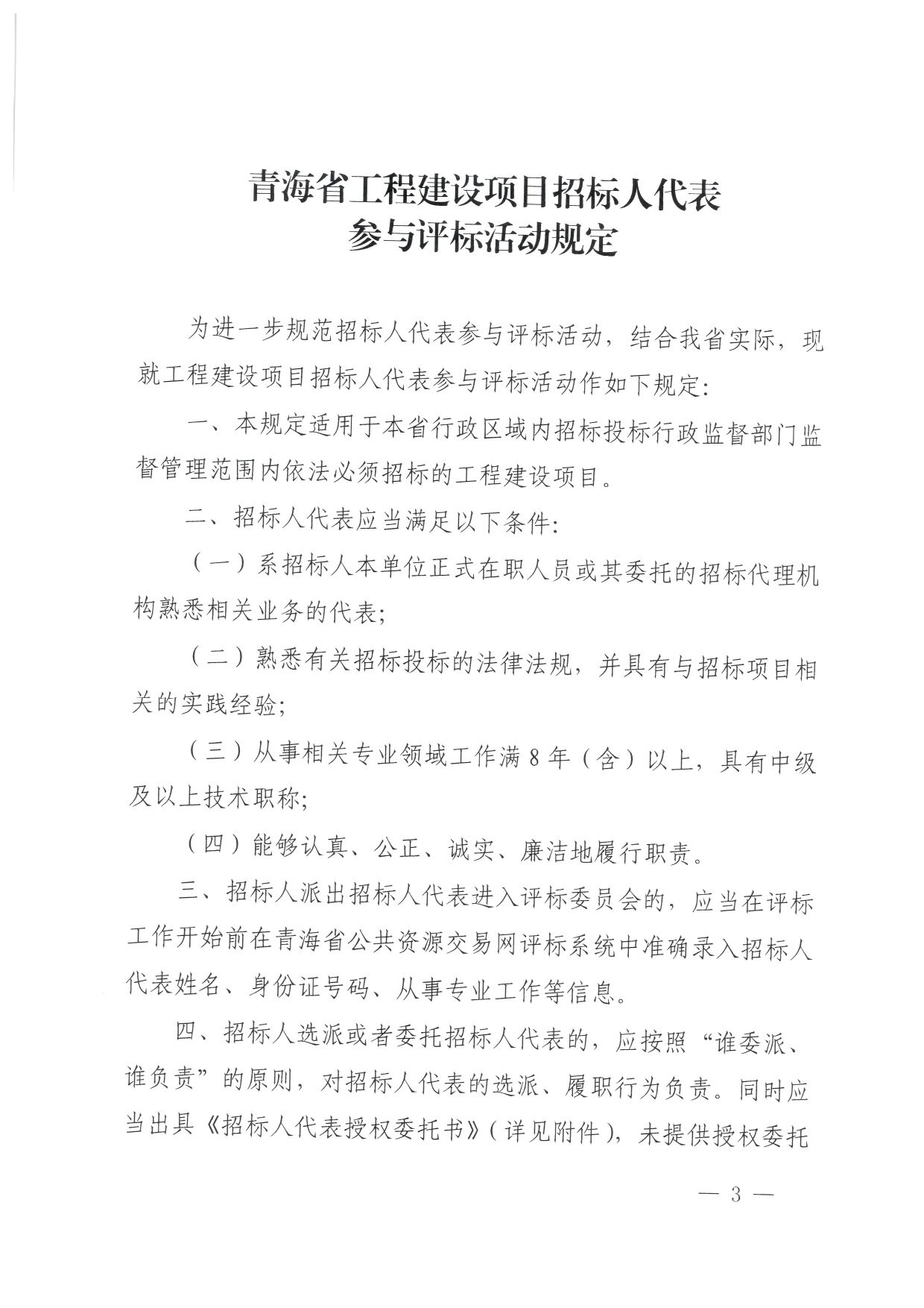 | 關(guān)于印發(fā)青海省工程建設(shè)項目招標人代表參與評標活動規(guī)定的通知 |